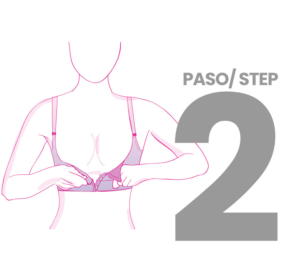 Ubique la base por debajo del busto y los ganchos en la parte frontal, luego ajuste de abajo hacia arriba.